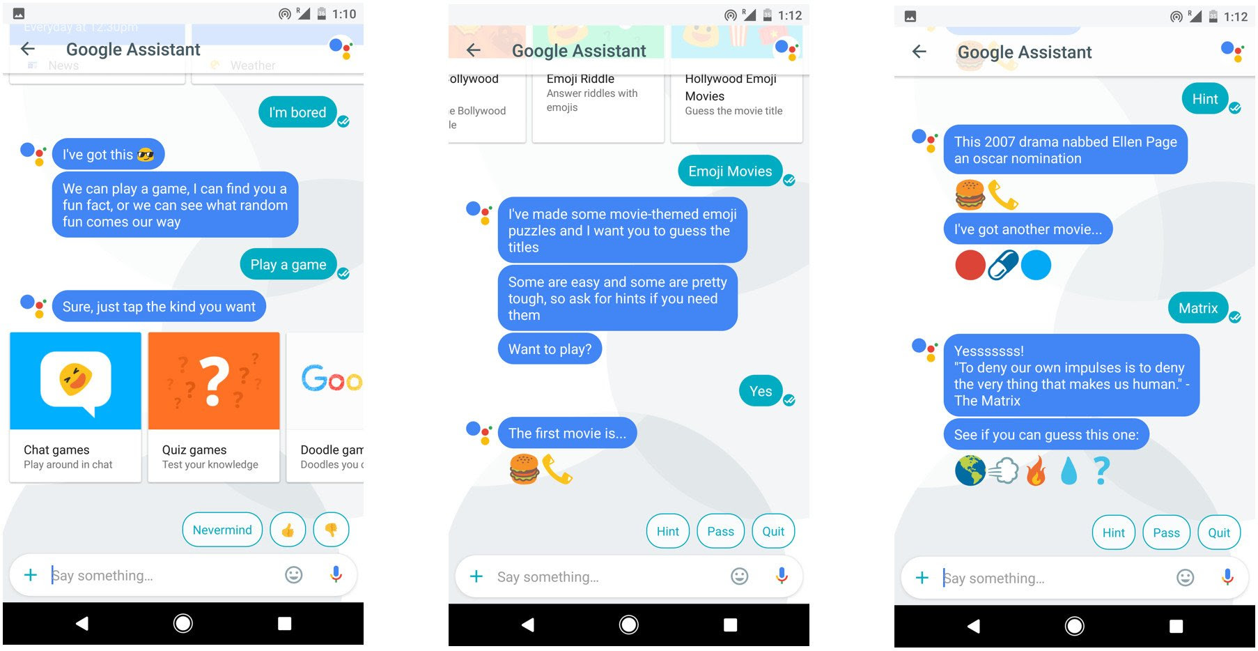 Feeling bored? You can ask the Google Assistant to play songs and videos, tell jokes, and if you're in the mood to procrastinate some more, you can also play puzzles and games with the service. Just say "let's play a game," and you'll see options for solitaire, tic-tac-toe, chat games (guessing Hollywood movies based on emojis is harder than you think), quiz games, and more. Games featured in Google Doodles are also available, including Pac-Man, Rubik's Cube, and Beethoven.